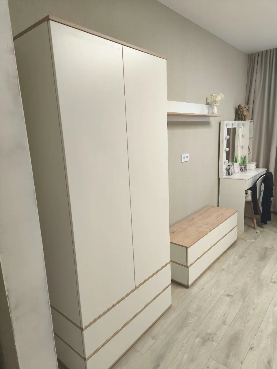 Очень нравится продукция фабрики Вереск. Все доставили в срок и собрали тоже, никаких проблем не возникло. Качество прекрасное, мебель очень красивая. Единственное, что нажимной замок находится снизу и когда нажимаешь в середину двери шкафа он не открывается, руку нужно опускать пониже, но для меня это не критично, я очень довольна. Менеджер помог выбрать наполнения шкафа, что оказалась идеальным решением, спасибо большое!