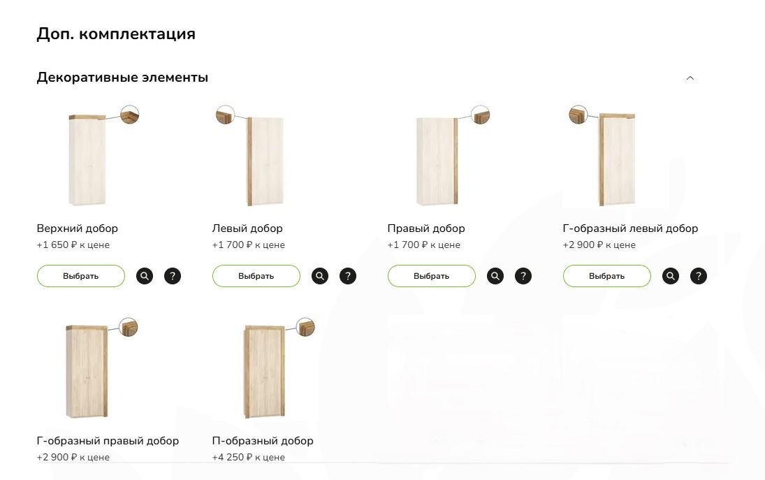 В «Вереске» можно купить готовый шкаф с добором с любой стороны. С доборами шкаф будет смотреться, как встроенный, а вам не нужно будет переплачивать за индивидуальный проект.