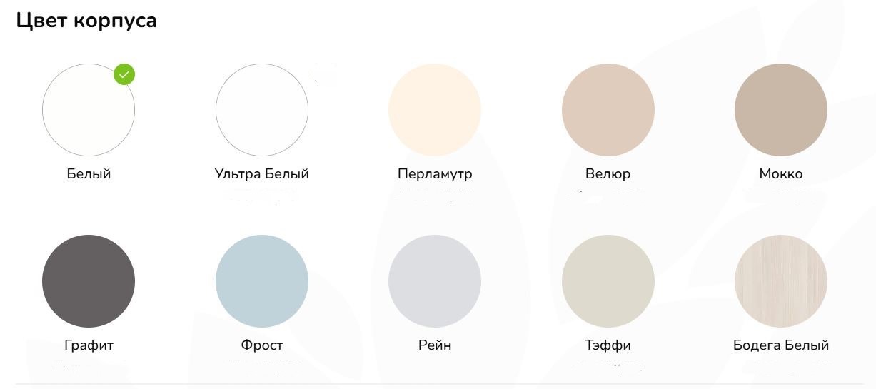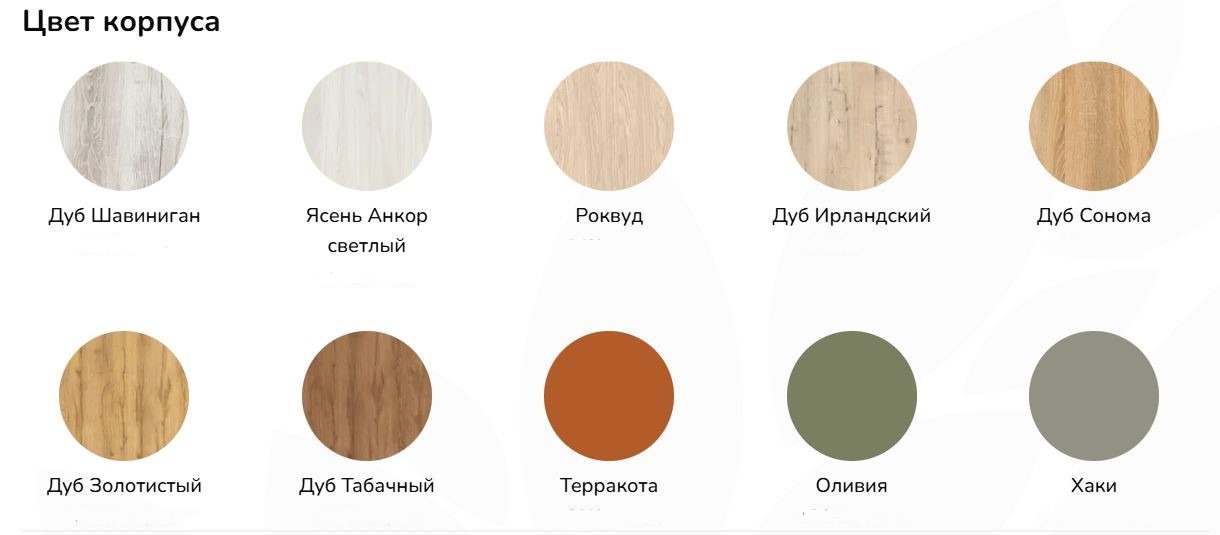 У «Вереск» есть возможность сочетать цвет корпуса и фасада из каталога, что помогает адаптировать мебель под конкретный интерьер и избежать стандартных, шаблонных вариантов.