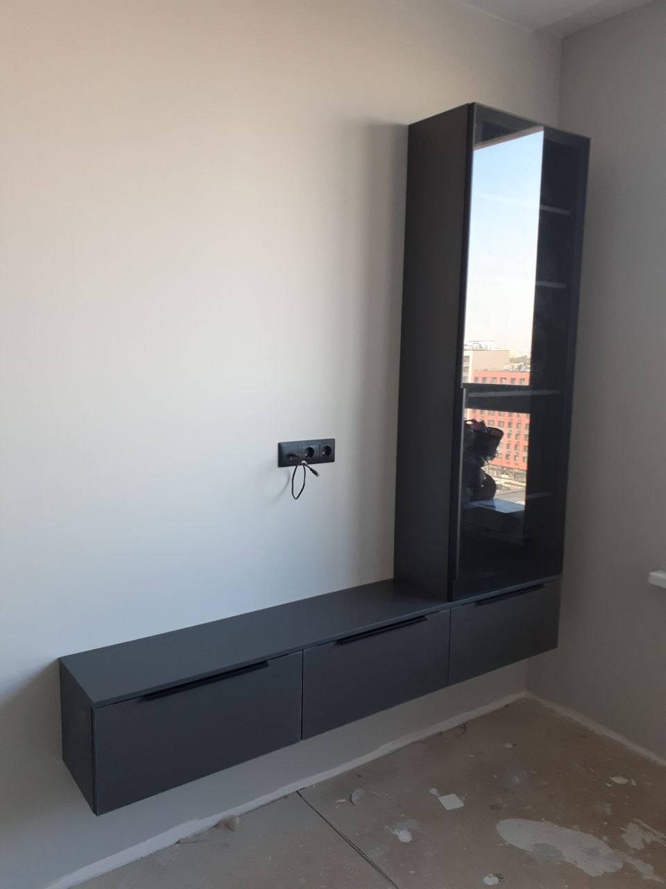 Анна отмечает, что для гостиной идеально подходит ТВ-тумба длиной 150–180 см. К ней легко добавить рабочий стол или открытый стеллаж — места хватит для всех нужд.