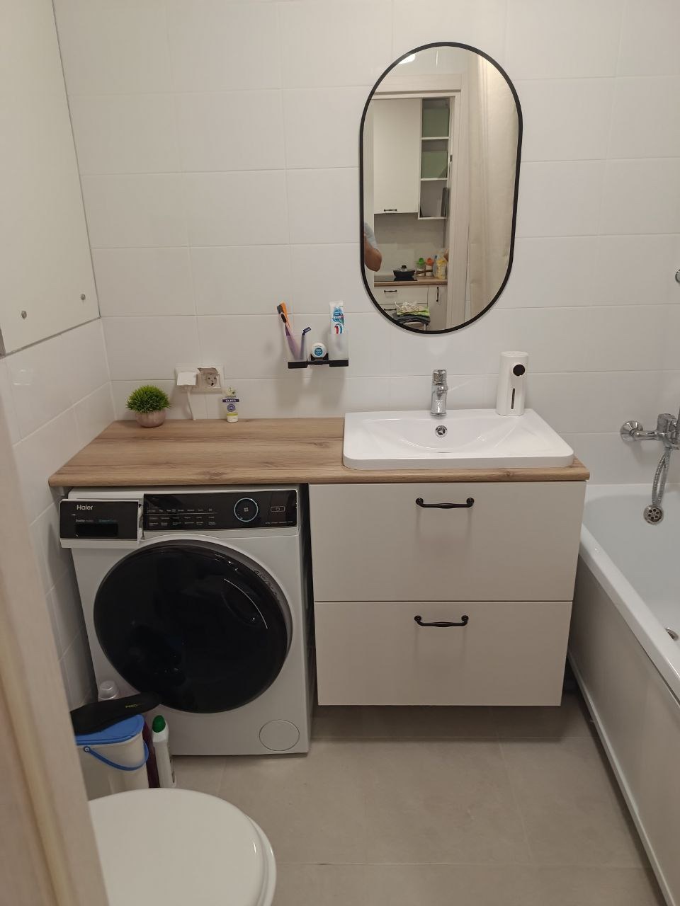 А ещё в ПИК-однушках в санузле предусмотрена ниша под шкаф рядом с раковиной. У “Вереск” есть готовое решение для этого пространства.