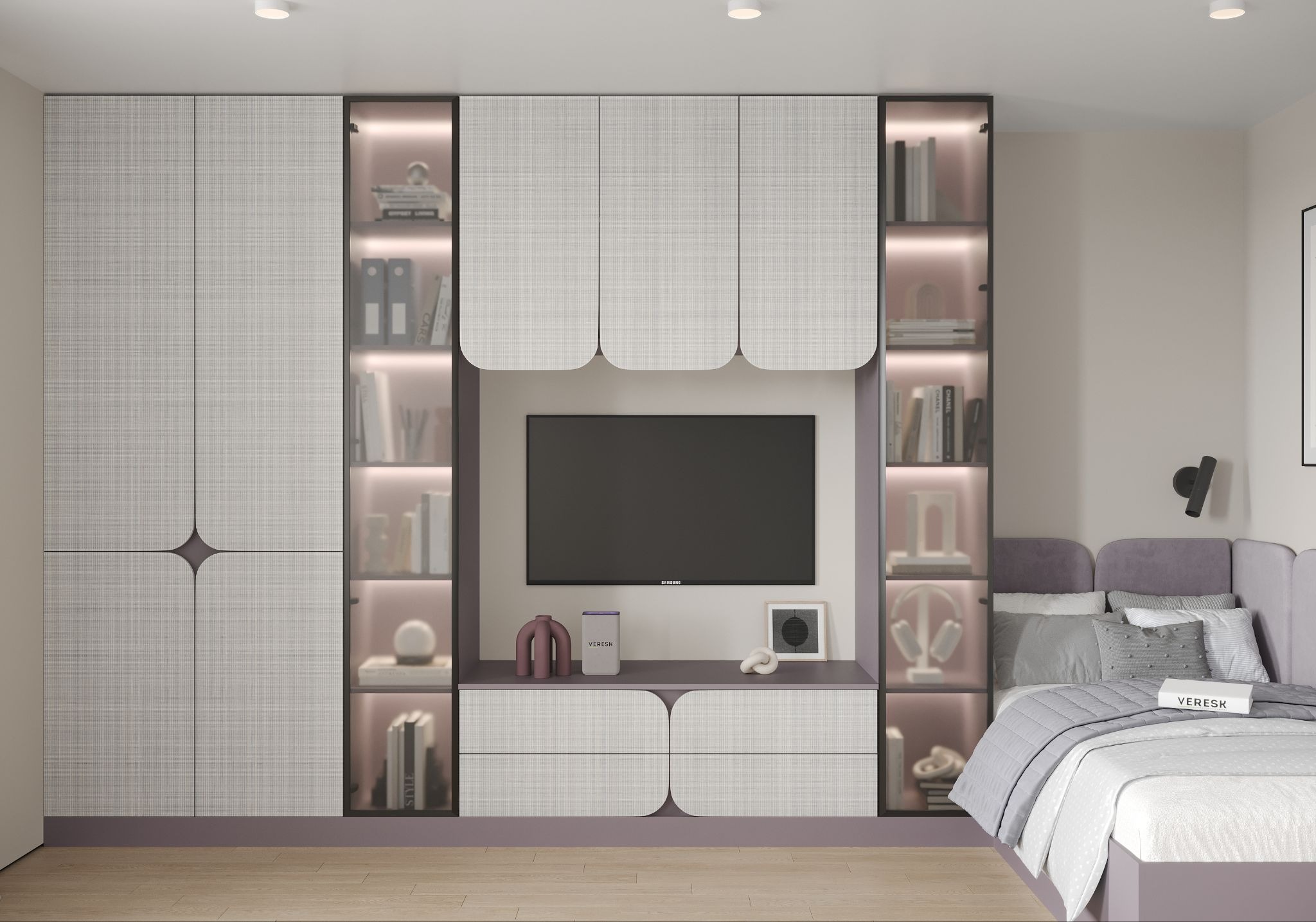 При этом сохраняется четкая симметрия и выверенная геометрия. Такой подход отражает современный тренд на изогнутые формы и радиусные элементы, которые визуально смягчают пространство и делают его более уютным.