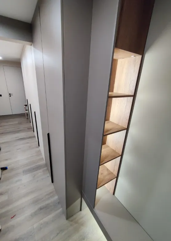 Нам установили очень хороший 5-метровый встроенный шкаф во всю стену + прихожую за разумную цену и за очень короткий срок. С момента утверждения окончательного варианта проекта до окончания его изготовления прошла буквально неделя. Ещё через пару дней шкаф уже был установлен. Качество изделия, а также уровень работы специалистов на всех этапах меня очень приятно удивил ( мне есть с чем сравнивать, это не первое изделие, которое я делаю на заказ для своей квартиры). Менеджер активно участвовала в проектировании шкафа, учитывала все наши пожелания. Сработано отлично. Служба доставки отработала четко, вовремя, без нареканий. Сборщик настоящий профессионал. Настройка ровно висящих дверей шкафа потребовала перенастройки ножек всего шкафа. Сборщик все сделал, и в итоге все выглядит идеально.