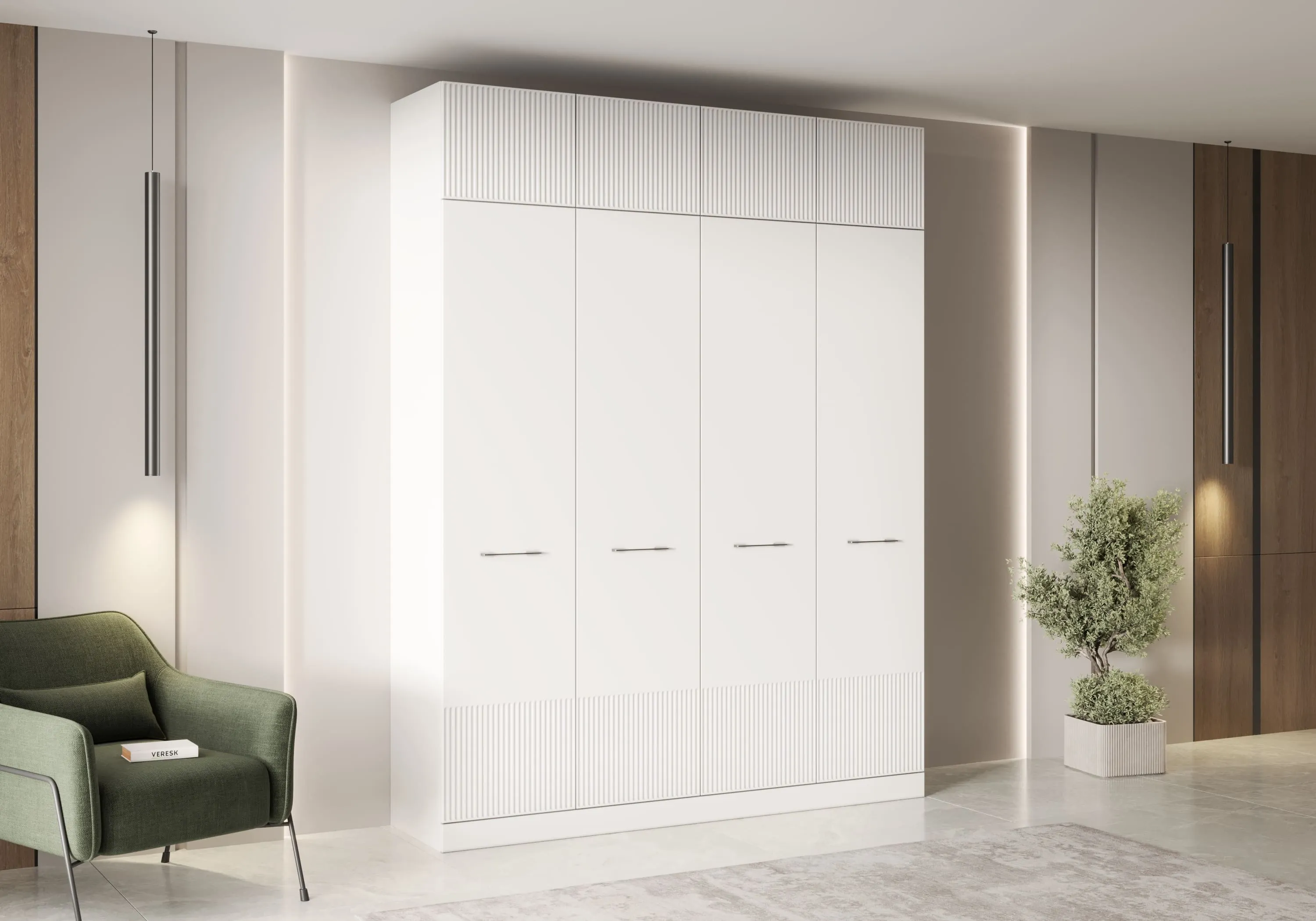 • Две центральные двери четырехдверного шкафа открываются парно.