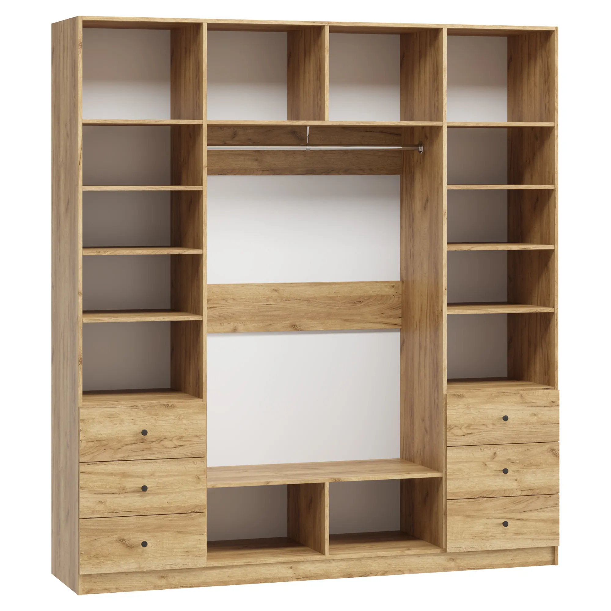 • В отделение с полками над ящиками при высоте от 1900 мм до 2100 мм устанавливается 3 полки, при высоте от 2100 мм до 2300 мм устанавливается 4 полки, при высоте от 2300 мм до 2500 мм устанавливается 5 полок.