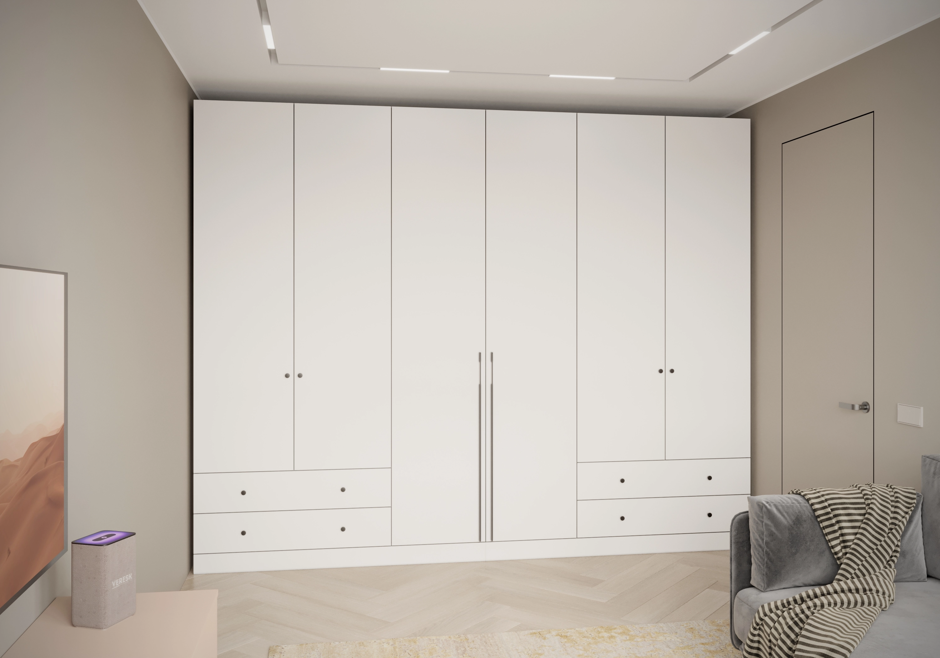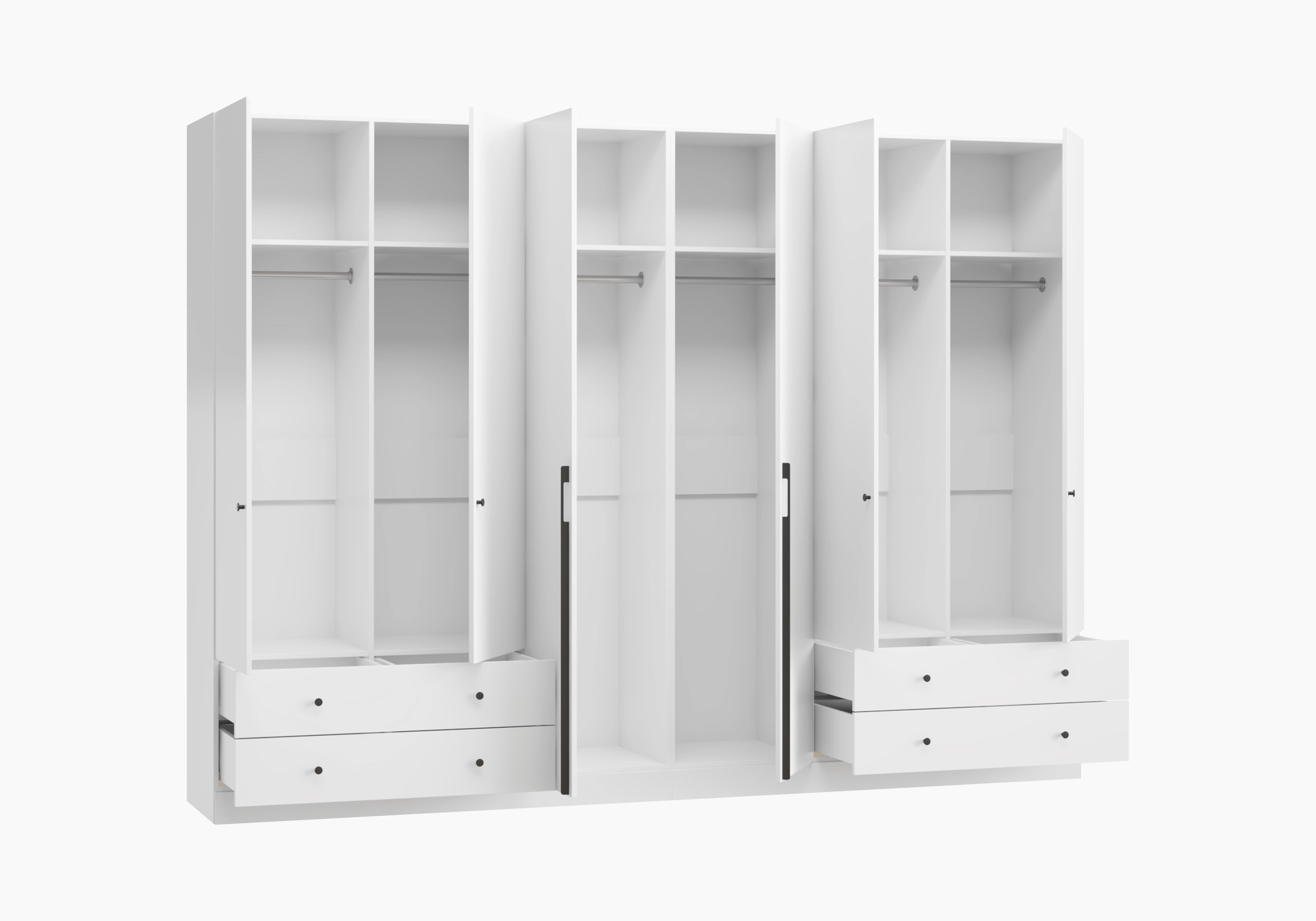 При ширине более 2700 мм шкаф конструктивно делится на две части.