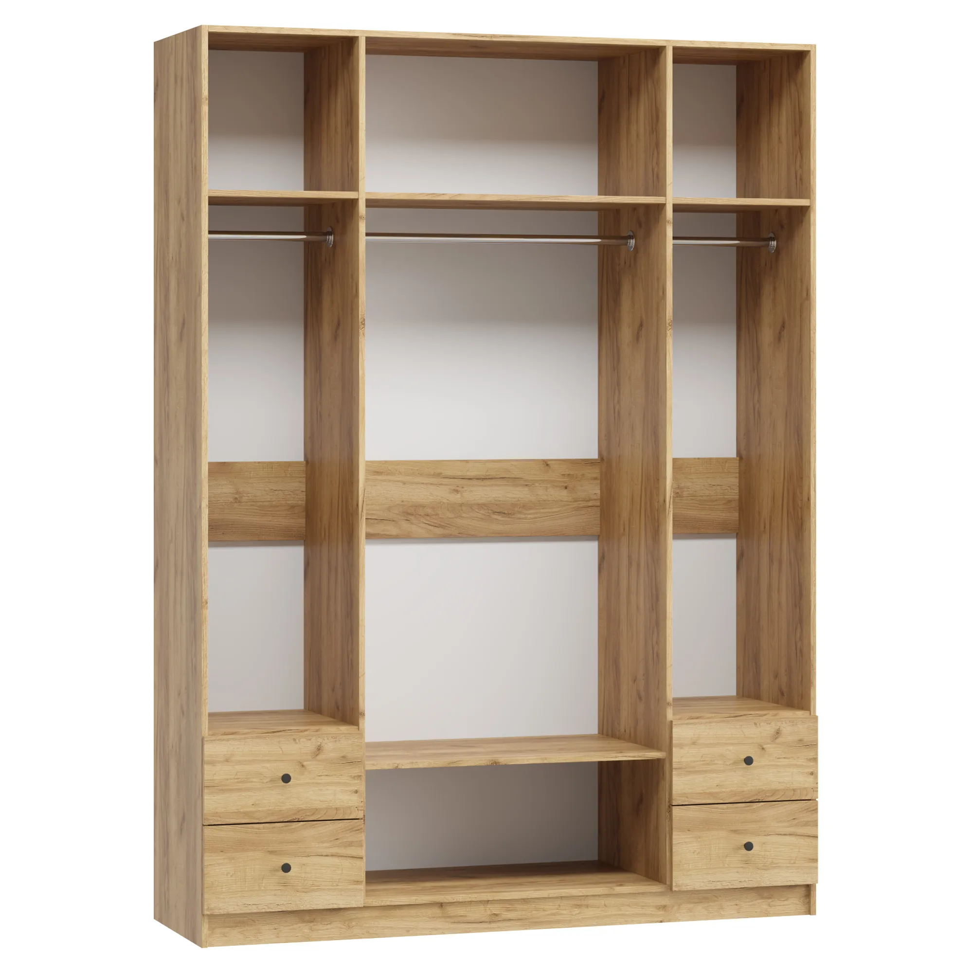 Распашной шкаф Ричмонд‑4.2 — четырехдверная модель с двумя парами ящиков по бокам. Вместительная мебель для размещения большого гардероба. Прекрасно впишется в интерьер вашей спальни, прихожей или гостиной.