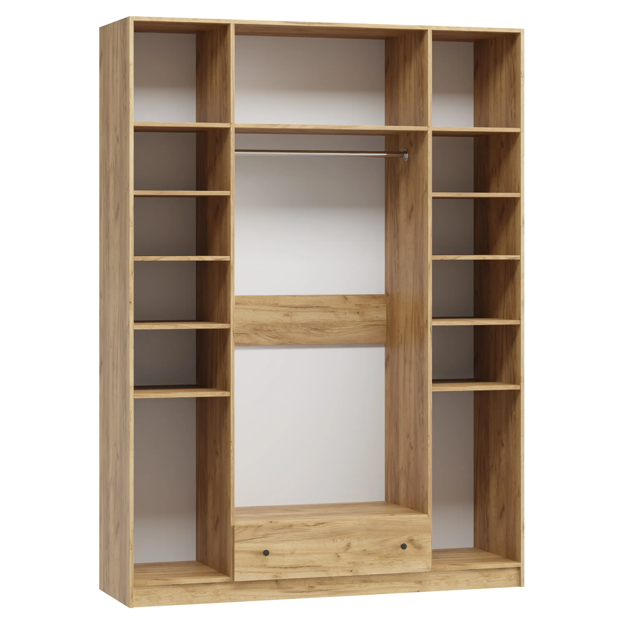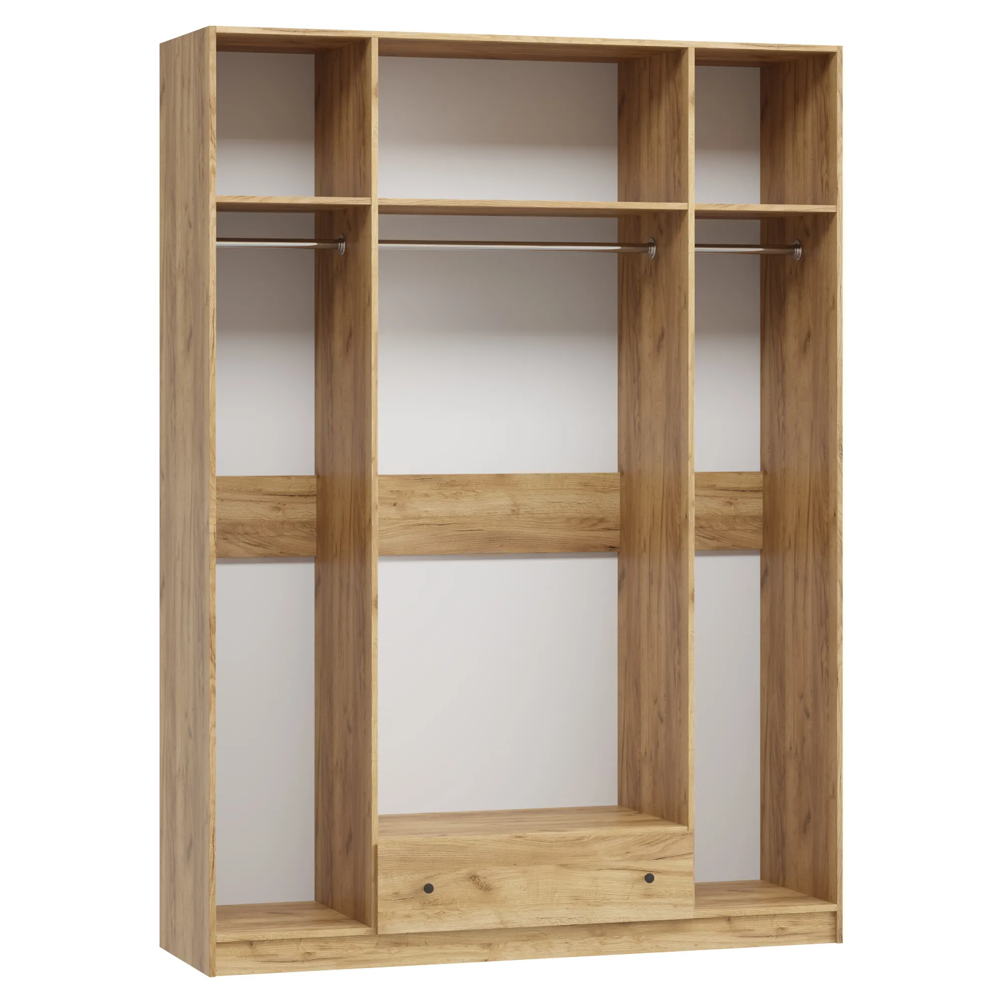 Распашной шкаф Ричмонд‑4.5 — четырехдверная модель с одним широким ящиком, созданная для хранения гардероба всей семьи. Идеально впишется в современные интерьеры в эко-стиле, а также в стиле лофт, джапанди и сканди.