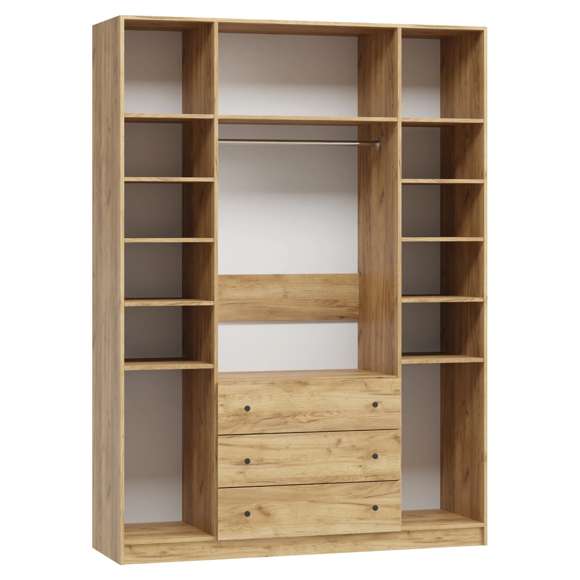 • При высоте от 1800 мм до 2000 мм в отделение Белье над ящиками устанавливается 3 полки; при высоте 2100 мм и 2200 мм - 4 полки; при высоте 2300 и выше - 5 полок.
