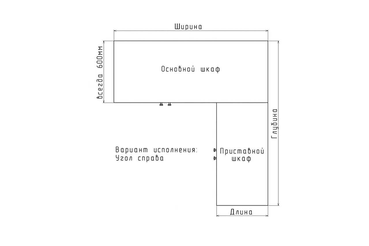 • Глубина Основного шкафа всегда 600 мм.