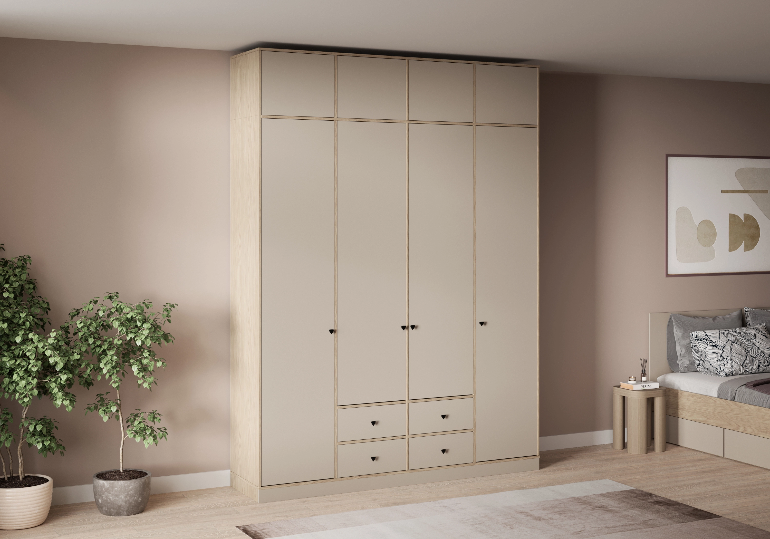 Распашной шкаф Виггинс-4.4 с антресолью — незаменимый предмет интерьера, оформленный в привлекательной палитре оттенков.