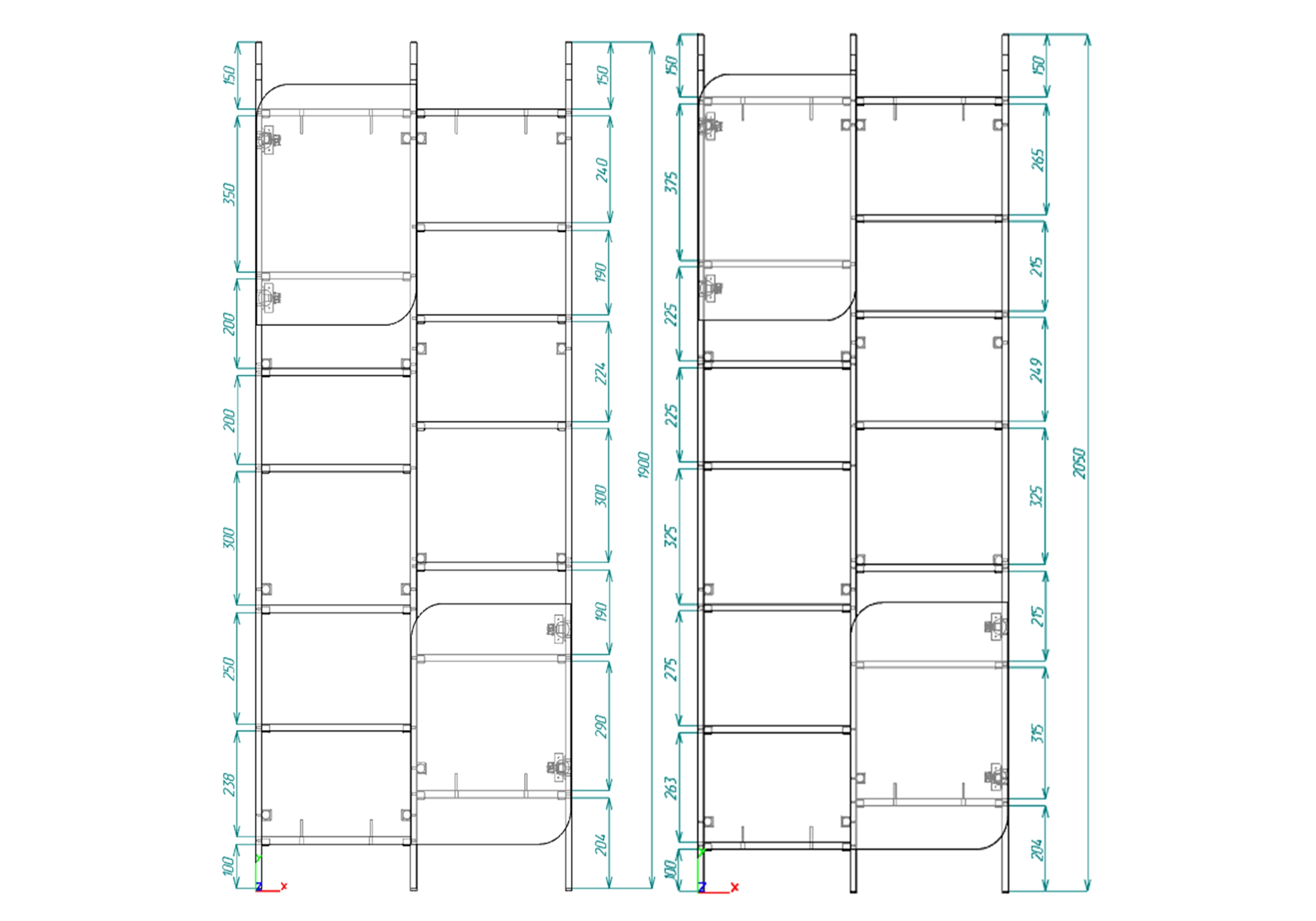 • Расстояние между полками меняется в зависимости от высоты.