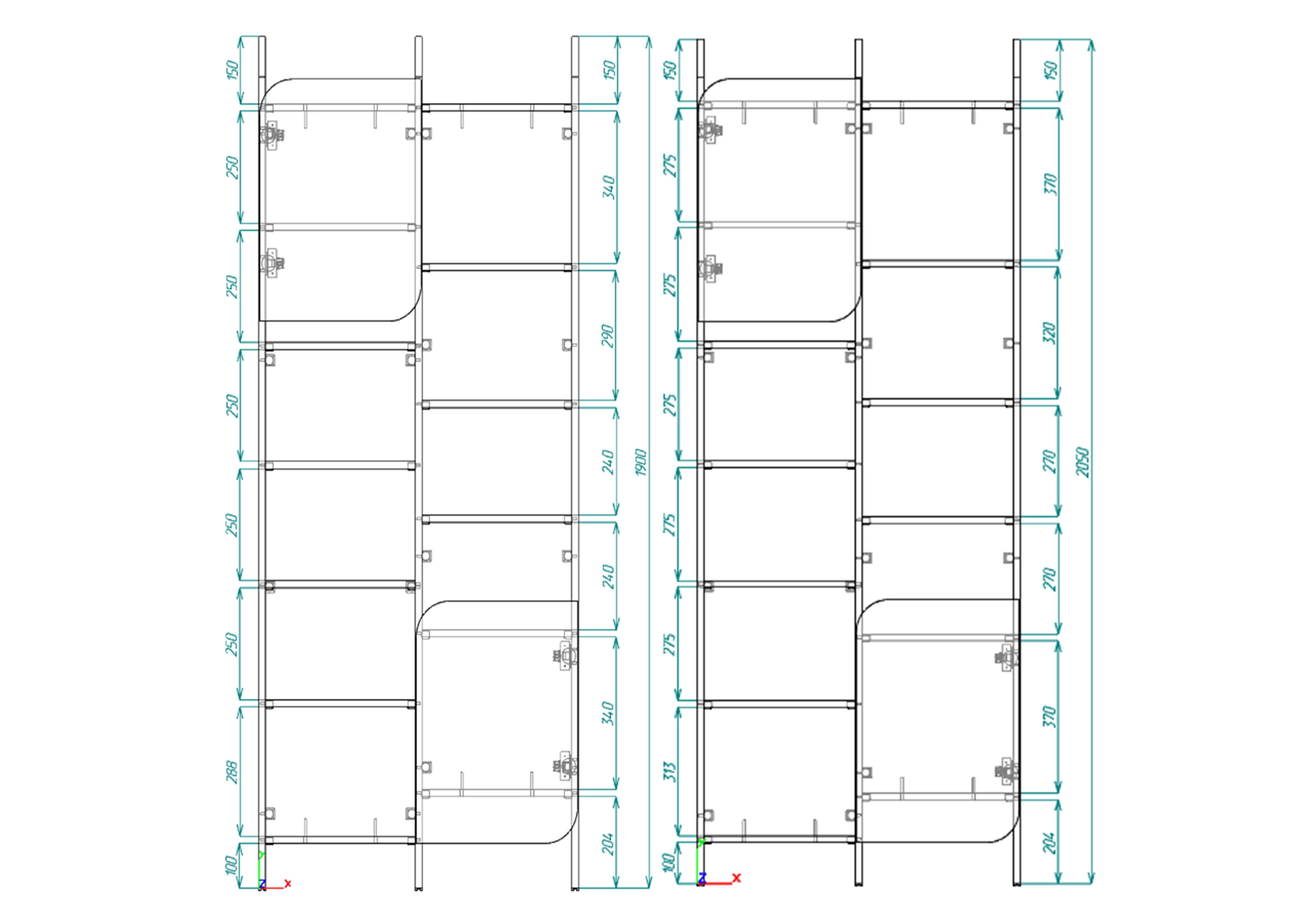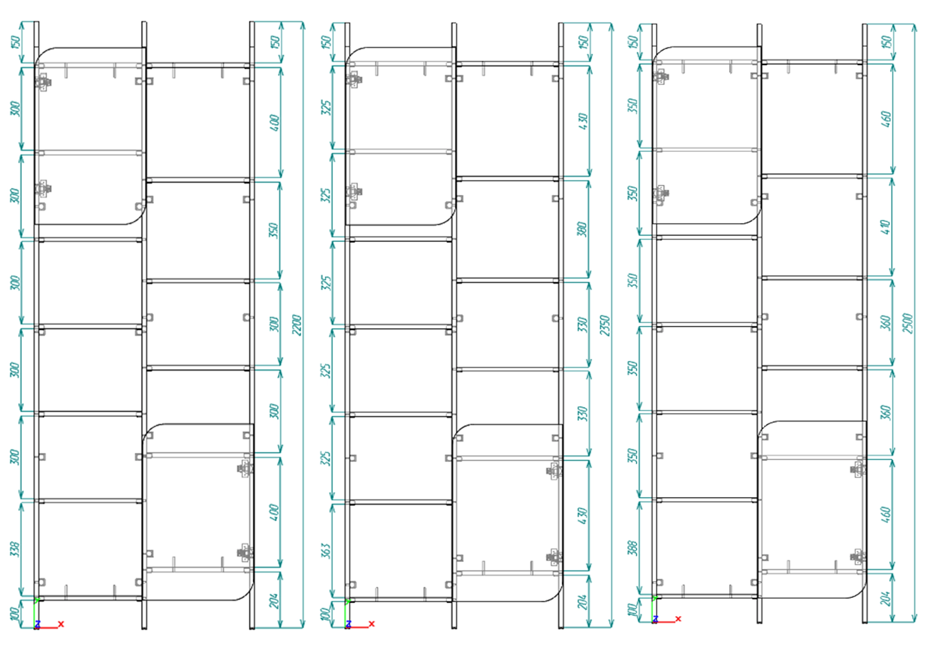 • Расстояние между полками меняется в зависимости от высоты.